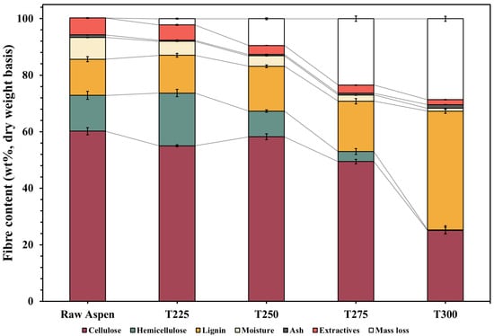 Plant fibre content (cellulose, hemicellulose, lignin, and extractives) of the torrefied and untreated biomass was analysed using an Ankom 2000 Fiber Analyzer (ANKOM Technology, New York, NY, USA) according to the detailed protocol outlined in Cahyanti et al. [6].