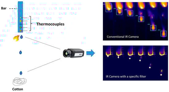 - Hu, C.; Fontaine, G.; Tranchard, P.; Delaunay, T.; Collinet, M.; Marcille, S.; Bourbigot, S. In-Situ Investigation of Temperature Evolution of Drippings via an Optimized UL-94 Instrumentation: Application to Flame Retarded Polybutylene Succinate. Polym. Degrad. Stab. 2018, 155, 145–152. [Google Scholar] [CrossRef]