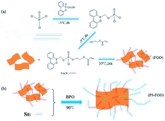- Wang, X.; Song, L.; Yang, H.; Xing, W.; Kandola, B.; Hu, Y. Simultaneous Reduction and Surface Functionalization of Graphene Oxide with POSS for Reducing Fire Hazards in Epoxy Composites. J. Mater. Chem. 2012, 22, 22037. [Google Scholar] [CrossRef]