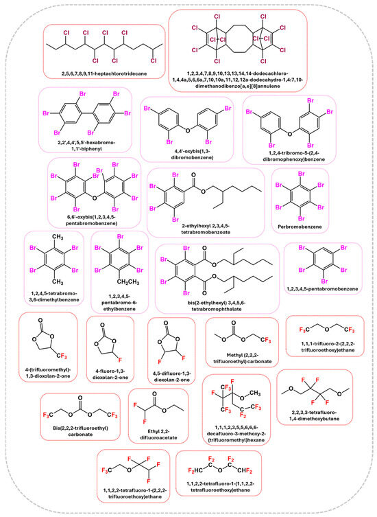 - Zhang, R.; Li, J.; Wang, Y.; Jiang, G. Distribution and Exposure Risk Assessment of Chlorinated Paraffins and Novel Brominated Flame Retardants in Toys. J. Hazard. Mater. 2023, 447, 130789. [Google Scholar] [CrossRef] [PubMed]