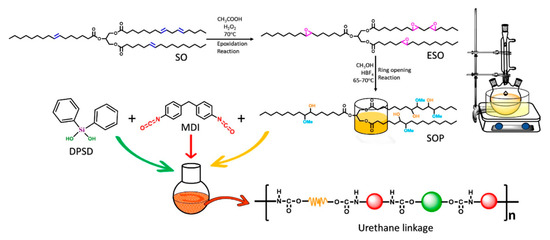 - Patel, R.; Chaudhary, M.L.; Chaudhary, S.; Gupta, R.K. Comparative Analysis of Aliphatic and Aromatic Isocyanates on Soy-Based Polyurethane Films Modified with Schiff Base Diol. J. Polym. Environ. 2025, 33, 415–430. [Google Scholar] [CrossRef]