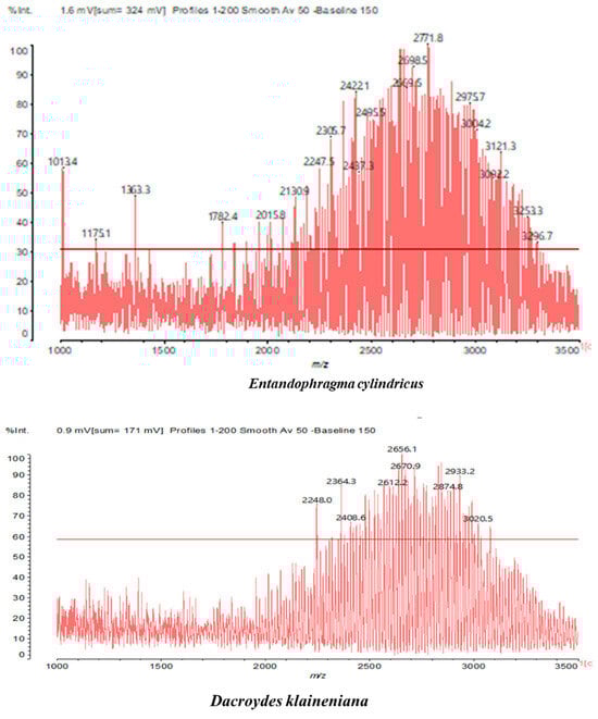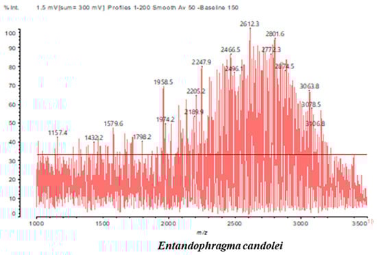 MALDI-TOF spectrum between 1000 Da and 3500 Da.