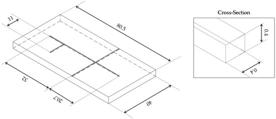 Axonometric view of the 3D-printed mold (on the left). The inset (on the right) shows a magnification of the microchannel and the fiber’s slot. Sizes are expressed in [mm].