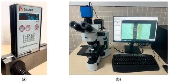 Measurement tools employed in the study: (a) roughness tester, (b) microscope.