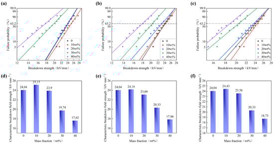 | Size | Mass Fraction (wt%) | Eb (kV/mm) | β |