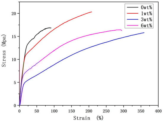Stress-strain curves of PVDF/BN NFYs at different BN concentrations.