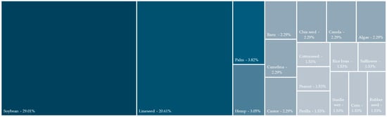 Seed-based oils are the most used across the studies (63.4%), ranging from commonly known soybean and linseed to the less used safflower [52,53], chia seed [54], and jatropha [55]. Their straightforward way to be obtained, together with their high availability are the main reasons to be studied. However, at this moment, most of them have a low productivity, thus making it more difficult to implement on a larger scale. Subsequently, fruit-based oil, such as palm oil, is also commonly studied [56,57]. Triolein oil obtained from algae [58], as well as wood-derived oils such as honokiol [59], has still an enormous potential to be deeply explored due to their availability and thermal stability. Cereal/grain-derived oils, such as rice bran, so far used with thermal insulation purposes [60], remain a great option to be explored in terms of epoxidation and resin production.