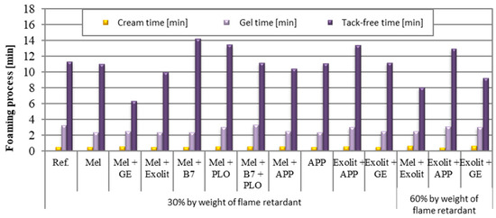 The foaming process was evaluated by determining characteristic times, i.e., cream time, gel time, and tack-free time.