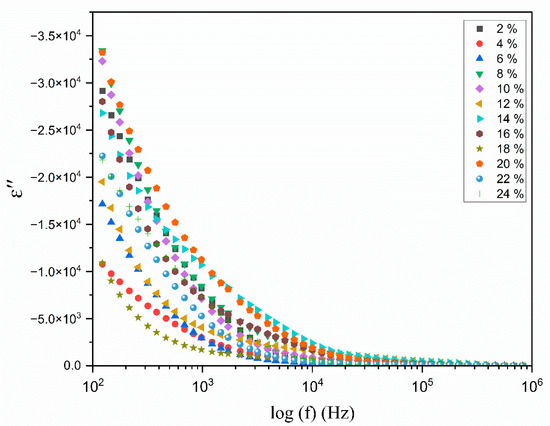where the real part of the complex’s permittivity, often referred to as the dielectric constant, is denoted as , while the imaginary part, which is commonly known as the dielectric loss factor, is represented as . The dielectric constant generally reflects the polarity of the polymer, as well as the energy accumulated during each cycle of the material when subjected to an alternating electric field. Conversely, the dielectric loss factor signifies the energy dissipated due to the movement of ions. Both the electric constant and the loss factor can be determined by