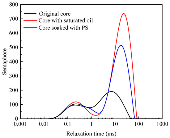 The rock core was first placed into a MicroMR12-040V nuclear magnetic resonance instrument (Newmai, Suzhou, China) to measure the energy spectrum. Then, crude oil was injected into the core under a high-pressure environment for 3 d, and then the energy spectrum was calculated for the second time. After the measurement, it was placed in a 0.5 wt% PS solution at room temperature for 7 d. Finally, its third energy spectrum was evaluated.