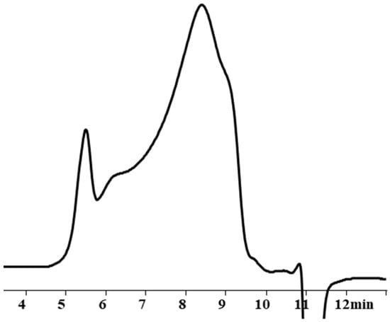 GPC analysis was performed on a chromatographic system: high-pressure pump LC-10ADvp (Shimadzu, Kyoto, Japan), a refractometer detector Smartline RI 2300 (KNAUER, Berlin, Germany), and thermostat JETSTREAM 2 PLUS (KNAUER, Berlin, Germany). The temperature was 40 ± 0.1 °C, the eluent was toluene + 2% THF, and the flow rate was 1.0 mL/min. Columns 300 × 7.8 mm, Phenogel sorbent (Phenomenex, Torrance, CA, USA), 5 μm, pore size from 50 Å to 105 Å. Calibration of columns relative to Agilent polystyrene standards (USA). Processing of chromatograms and calculation of molecular weight parameters are given by the Multichrome for Windows program, version 1.6 (Ampersend, Moscow, Russia).