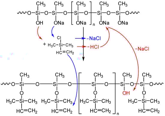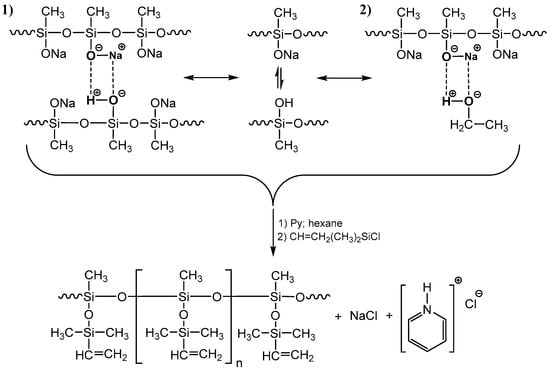 In the case of blocking sodium dimethylsiloxanediolates with VDMCS, the same sequence of introducing the blocking agent and the compound to be blocked was used [42]. The only difference is that the blocking functional groups are sodiumoxy groups.