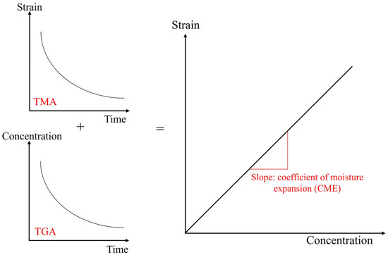 The coefficient of moisture expansion is obtained by linear regression on the changes in dimensions and weight measured by thermogravimetric analysis (TGA) and thermal–mechanical analysis (TMA).
