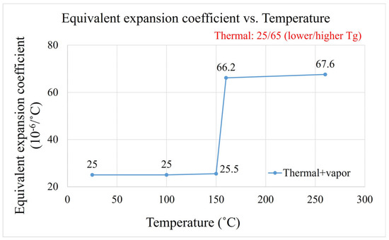 The thermal expansion coefficients above and below the EMC material’s glass transition temperature (Tg) are 25 and 65 (unit: 10−6/°C), respectively. Figure 24 shows the calculated equivalent expansion coefficient.