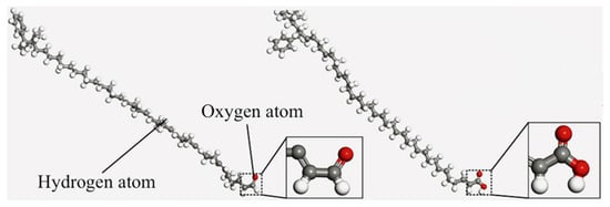 In recent years, with the development of high-grade road engineering and the continuous increase in traffic load, the demand for performance research on asphalt materials has become increasingly urgent [1]. Therefore, a deeper understanding of the relationship between the physicochemical properties of asphalt and its molecular composition is required [2]. However, asphalt is a black-brown mixture primarily composed of hydrocarbons with varying molecular weights and their non-metallic derivatives, including heteroatoms such as oxygen, sulfur, and nitrogen [3,4,5,6]. This complex chemical composition and molecular structure make it difficult for traditional experimental methods to accurately characterize the molecular makeup of asphalt. With advancements in computer science and technology, molecular simulation has provided new possibilities for analyzing the performance of asphalt materials at the nanoscale [7,8,9,10]. Common molecular simulation approaches include quantum mechanics (QM), molecular mechanics (MM), molecular dynamics (MD), and Monte Carlo (MC) methods [11]. Among these, MD simulation has become the most widely used tool for simulating the dynamic behavior of asphalt molecules, as it can accommodate multi-component systems through coarse-grained models [12].
