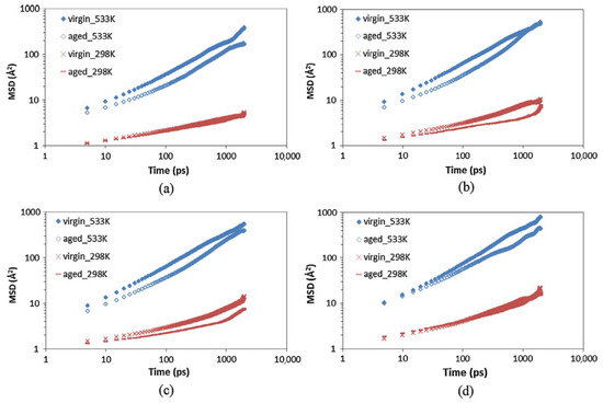 - Zhan, Y.; Wu, H.; Song, W.; Zhu, L. Molecular dynamics study of the diffusion between virgin and aged asphalt binder. Coatings 2022, 12, 403. [Google Scholar] [CrossRef]