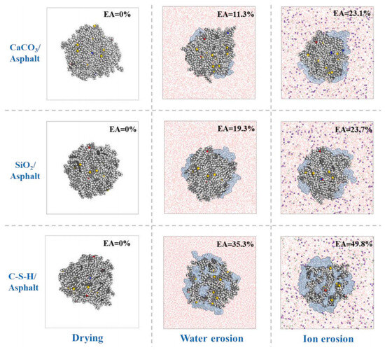 - Chen, P.; Luo, X.; Gao, Y.; Zhang, Y. Modeling percentages of cohesive and adhesive debonding in bitumen-aggregate interfaces using molecular dynamics approaches. Appl. Surf. Sci. 2022, 571, 151318. [Google Scholar] [CrossRef]