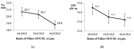 Given the presence of silanol groups on the surface of the carbon–silicon filler and its high content of amorphous silica, a partial replacement of the commercial silica filler with CSF was deemed of interest. The aim was to evaluate the effect of this substitution on the key properties of tread rubber compounds. Partly replacing the highly active silica filler with CSF was performed in the industrial formulation used for the tread of summer car tyres (Table 5).