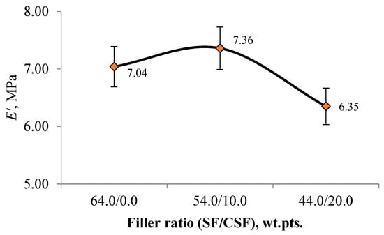 The unique physical and chemical characteristics of rice husk, namely the high content of amorphous silica (57–67 wt.% SiO2), developed porous structure, low density, and large specific surface area, determine its demand in various industrial processes and formulations, including as part of elastomer compositions [26,27,28]. Thus, in study [29], the physico-mechanical properties of materials based on natural rubber filled with rice husk ash (RHA) at varying loadings from 0 to 40 parts per 100 parts of rubber were investigated and compared with commercial reinforcing fillers (silica and carbon black). The results showed that incorporating RHA into natural rubber improved hardness but reduced tensile strength and tear resistance. Other properties, such as Young’s modulus and abrasion loss, showed no significant changes. However, natural rubber filled with RHA exhibited better resilience compared to rubber containing commercial silica and carbon black. Numerous attempts have also been made to utilise RHA as a filler for synthetic rubbers. In one of such attempts [30], it was found that the introduction of low-dispersity RHA into nitrile rubber-based compositions up to 60 parts by weight contributes to an insignificant change in the mechanical properties of rubbers, an improvement in the thermal stability of vulcanisates, which makes it possible to use RHA as a filler, providing both economic and environmental benefits. However, in work [31], during the study of the influence of the dosage of rice husk ash on the properties of materials based on natural rubber, it was found that the use of this filler is accompanied by a deterioration in mechanical properties (tensile strength, elastic modulus, hardness, abrasion resistance, and tear strength) compared to reinforcing fillers such as silicon dioxide and carbon black.