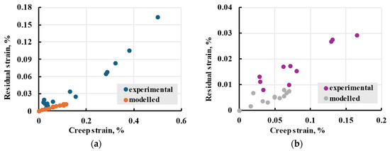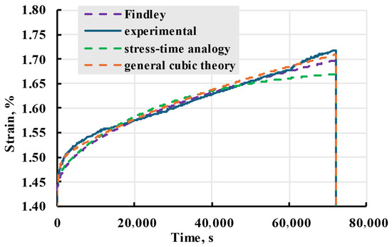 The obtained equation can be easily used for creep modelling with different stepwise loading histories, including creep-recovery cases. Applying stepwise loading combined with stress–time superposition allows for predicting the creep process for times well over what was available for the experiments [41]. Still, it is beyond the scope of this research.