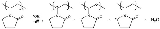 The abstraction of hydrogen atoms from the polymer’s backbone to produce PVP radicals.