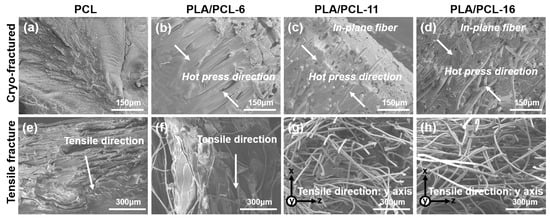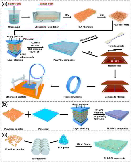 - Fan, Y.; Miao, X.; Hou, C.; Wang, J.; Lin, J.; Bian, F. High tensile performance of PLA fiber-reinforced PCL composite via a synergistic process of strain and crystallization. Polymer 2023, 270, 125778. [Google Scholar] [CrossRef]