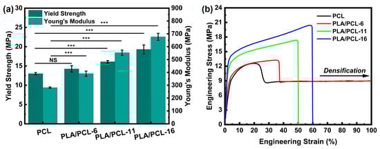 | PLA/PCL-11 | 16.10 ± 0.32 | 23.85 | 553.22 ± 21.19 | 96.70 | 50.54 ± 2.65 |