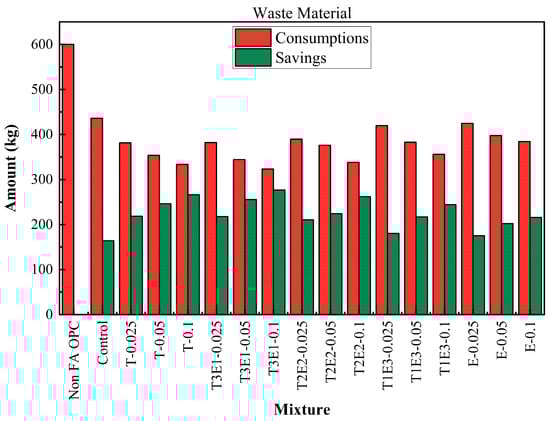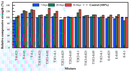 Figure A1 displays the cumulative compressive strength values for all mixtures at 7, 28, and 56 days.