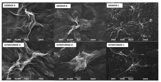 3.4. SEM Analysis of Bacterial Nanocellulose Obtained by Ultra-Turrax and Grinder