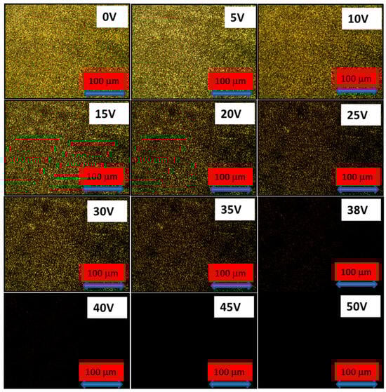 Microscope textures of PDLC system-based smart window at different voltages in crossed polarizer and analyzer condition.