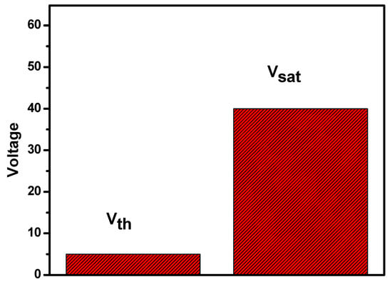 Comparative chart of threshold voltage (Vth) and saturation voltage (Vsat) for the PDLC smart window.