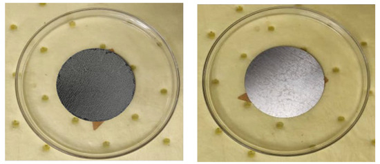 The abrasion test was conducted on three samples, with the mean weight loss per cycle determined to be 10 mg, amounting to 0.3% of the total sample weight. This was similar to the result reported by Garcia-Ruiz [17] for polymeric coatings of steel samples, which was 0.38%. The results provide strong insights into the enhanced performance of the nano-PVDF composite coating used in this study. In particular, this result strongly supports the pre-established notion that a polymer matrix’s mechanical properties are enhanced by virtue of nanoparticle inclusion. The ASTM D4151-based pull-off adhesion test yielded moderate results, with indications of cohesive failure at 2.53 Mpa [21]. In comparison, Hu et al. [18] achieved a slightly higher value of 2.761 MPa when testing ungalvanized PVDF-coated samples. In line with the aforementioned study, we allocated 120 h of curing time for the samples, allowing for enhanced surface adhesion, as well as addressing the potential for coating inhomogeneity, which in turn can create vulnerabilities on the coating surface. Figure 2 shows the samples prior to the chemical degradation test. The results showed contrasts in these samples, as one sample displayed discoloration and softening, while the other did not display such shortcomings, maintaining its properties with little to no pigmentation and strong mechanical features. Hong et al. [22] attributed such disparities and displays of failure in such tests to inconsistencies in filler dispersion.