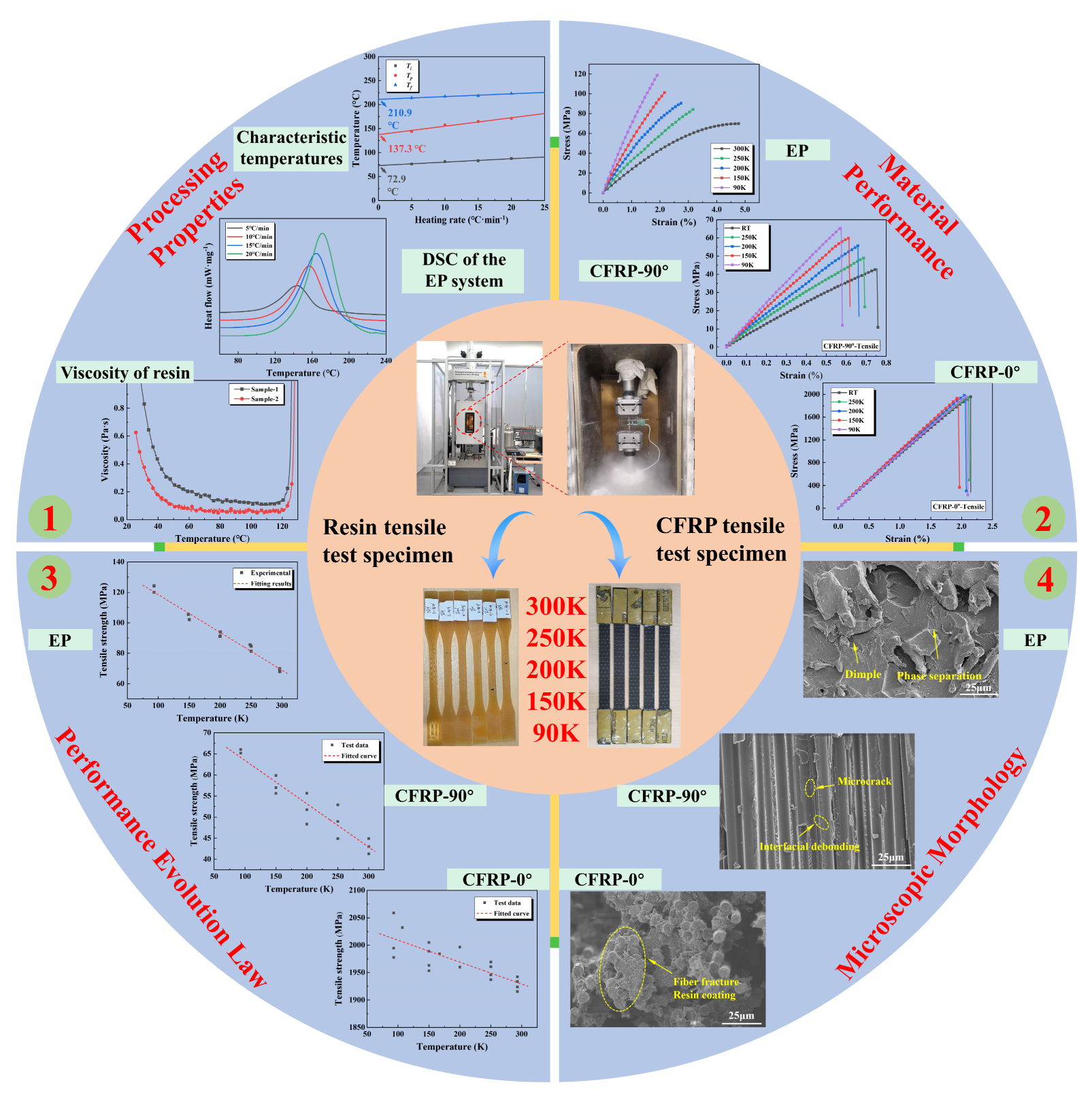 - Future research will focus on regulating resin content and fibre volume fraction to elucidate their influence on interfacial bonding, thermal expansion, and low-temperature mechanical behavior, while also systematically assessing the evolution of mechanical performance and damage mechanisms under thermal shock and cycling to better approximate service conditions.