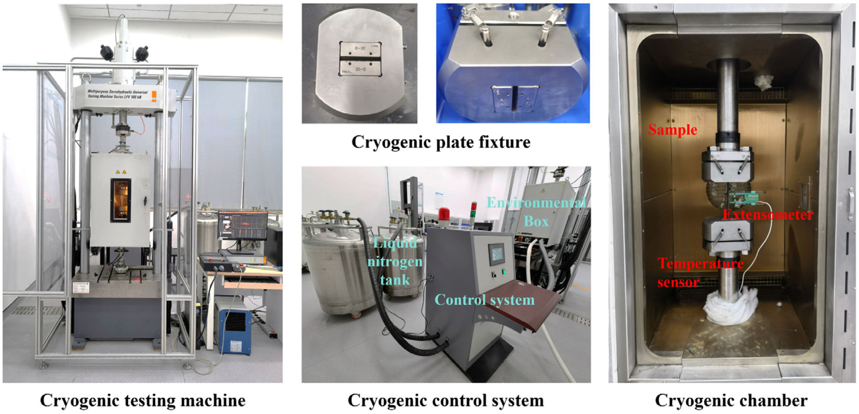 - Gong, M.; Wang, X.F.; Zhao, J.H. Experimental study on mechanical behavior of laminates at low temperature. Cryogenics 2007, 47, 1–7. [Google Scholar] [CrossRef]