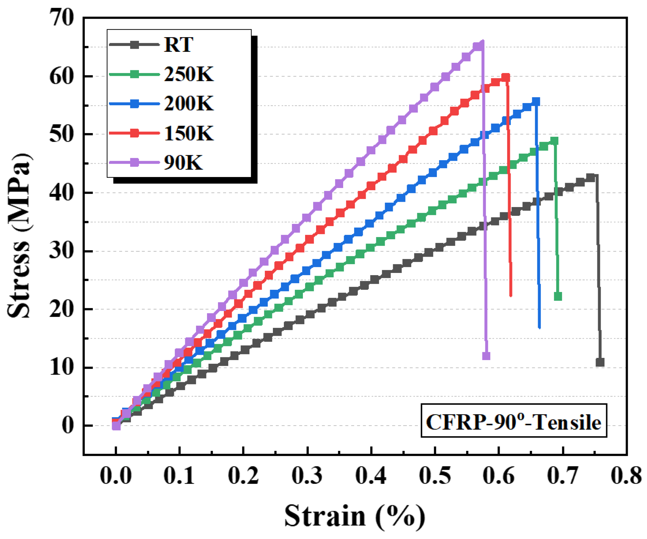 3.3.4. Transverse Tensile Properties of CFRP at Cryogenic Temperatures and Their Evolution
