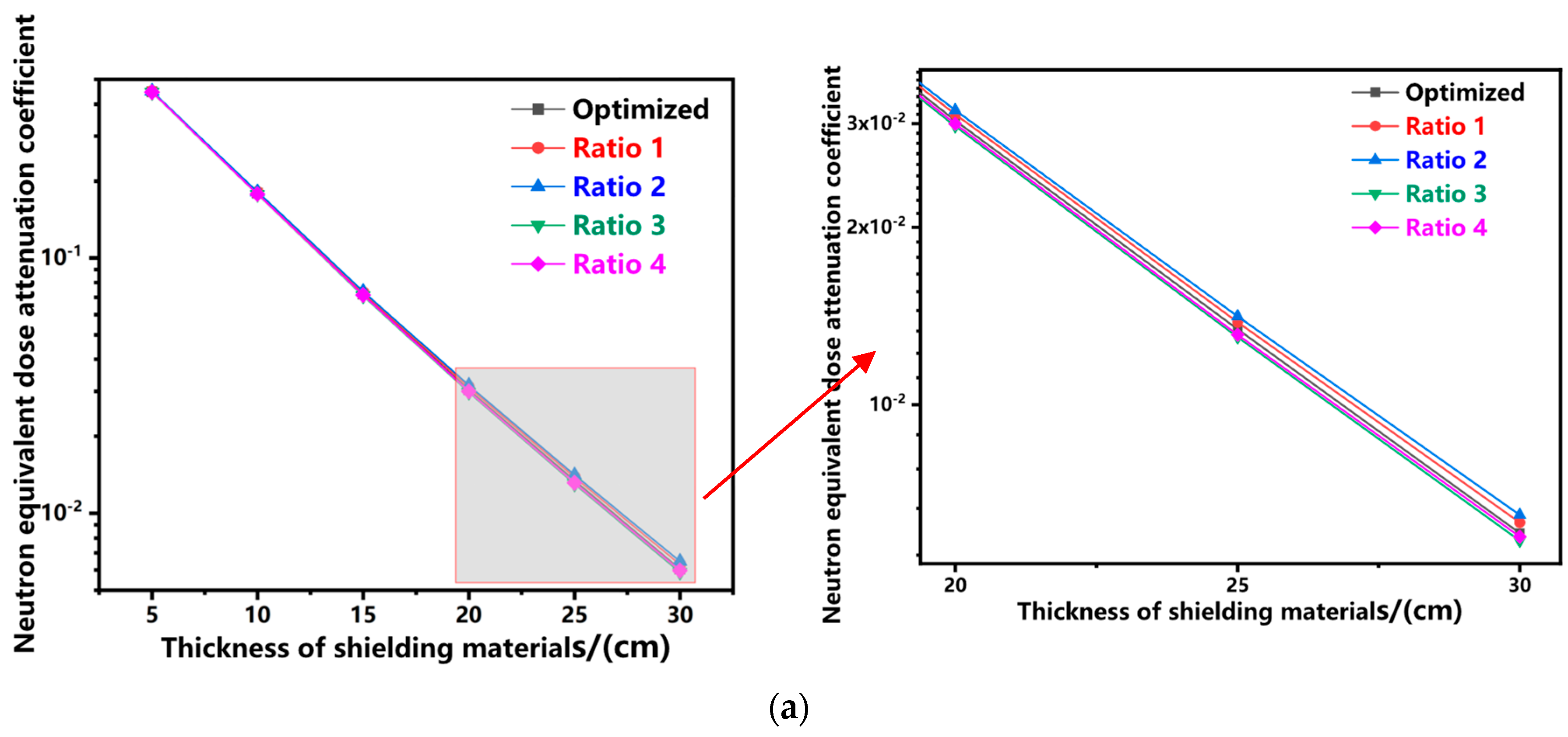 - Liu, X.Q.; Deng, Z.H.; Mao, F.; Shi, X.Q. Research on the Heat Resistance of Neutron Shielding Materials for Reactor Chambers. Nucl. Technol. 2021, 44, 87–92. [Google Scholar]