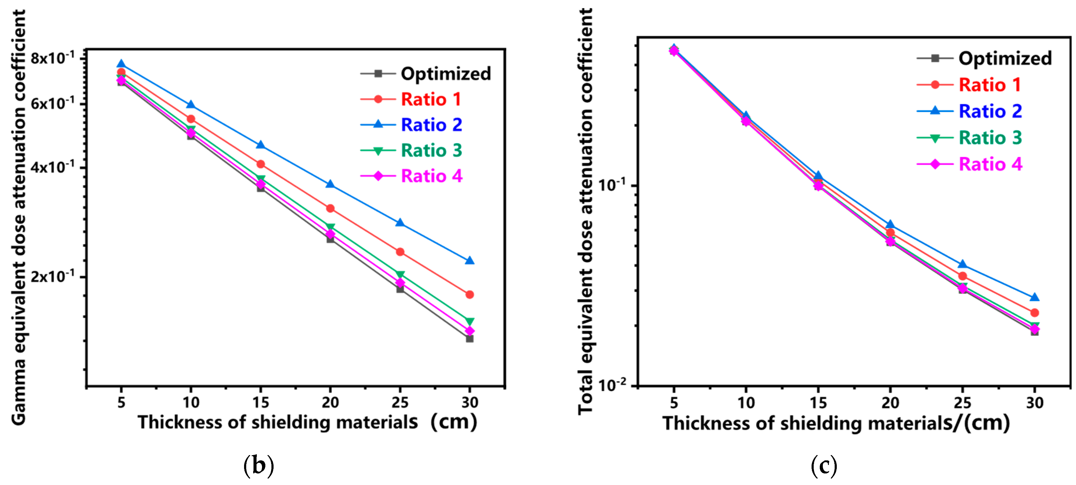 - Hu, H.S.; Xu, H.; Zhang, G.G.; Wang, Q.S.; Xie, Z.S.; Zhu, J.; Zhang, J.F. Optimization Design of New Nuclear Radiation Shielding Materials. At. Energy Sci. Technol. 2005, 39, 363–366. [Google Scholar]