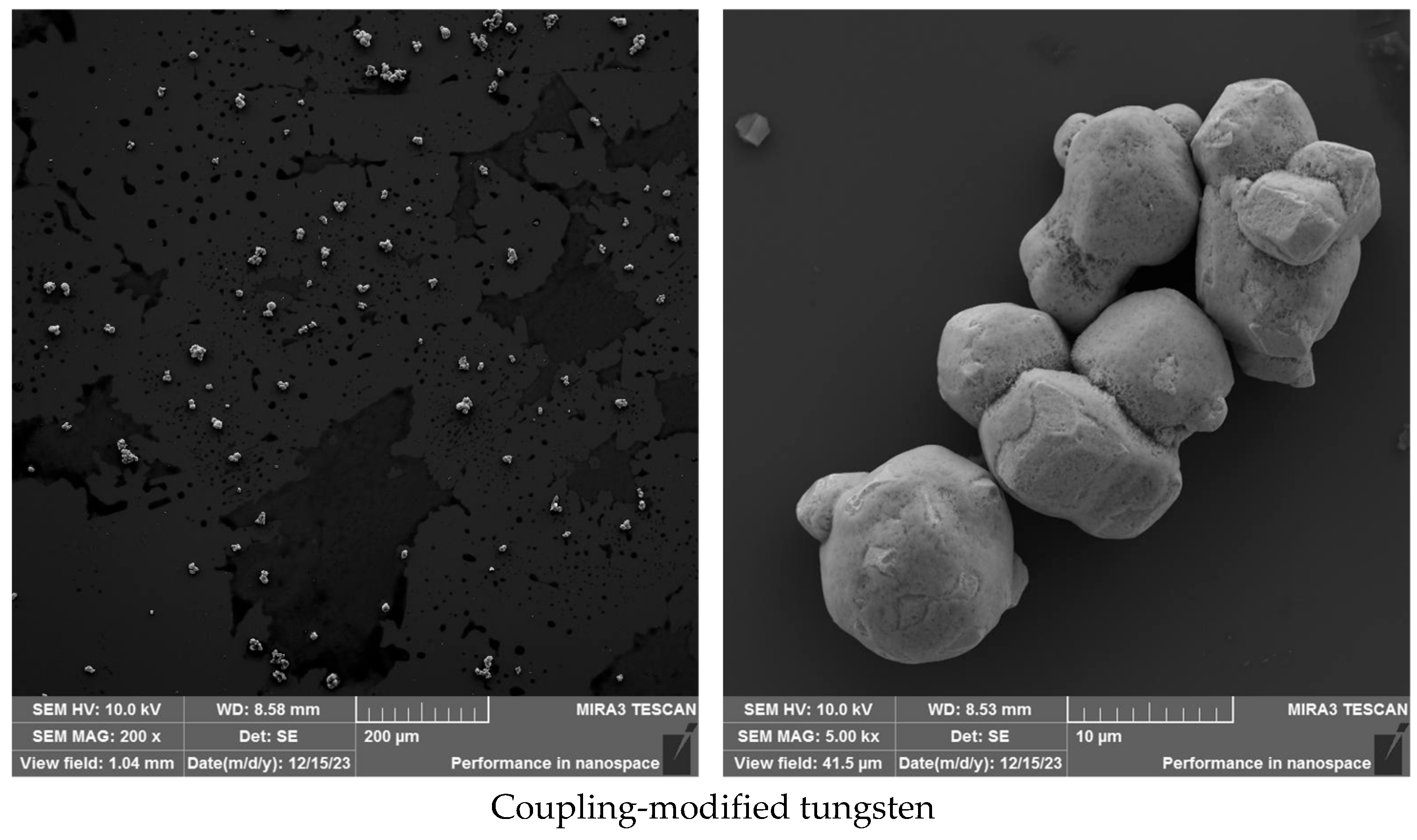 - Kong, X.W.; Hu, W.Q.; Du, Z.F.; Sun, T.; Ma, Z.Q. Effect of surface modification on the microstructure and sintering characteristics of tungsten nanopowders prepared by a wet chemical method. Philos. Mag. Lett. 2021, 101, 253–263. [Google Scholar] [CrossRef]