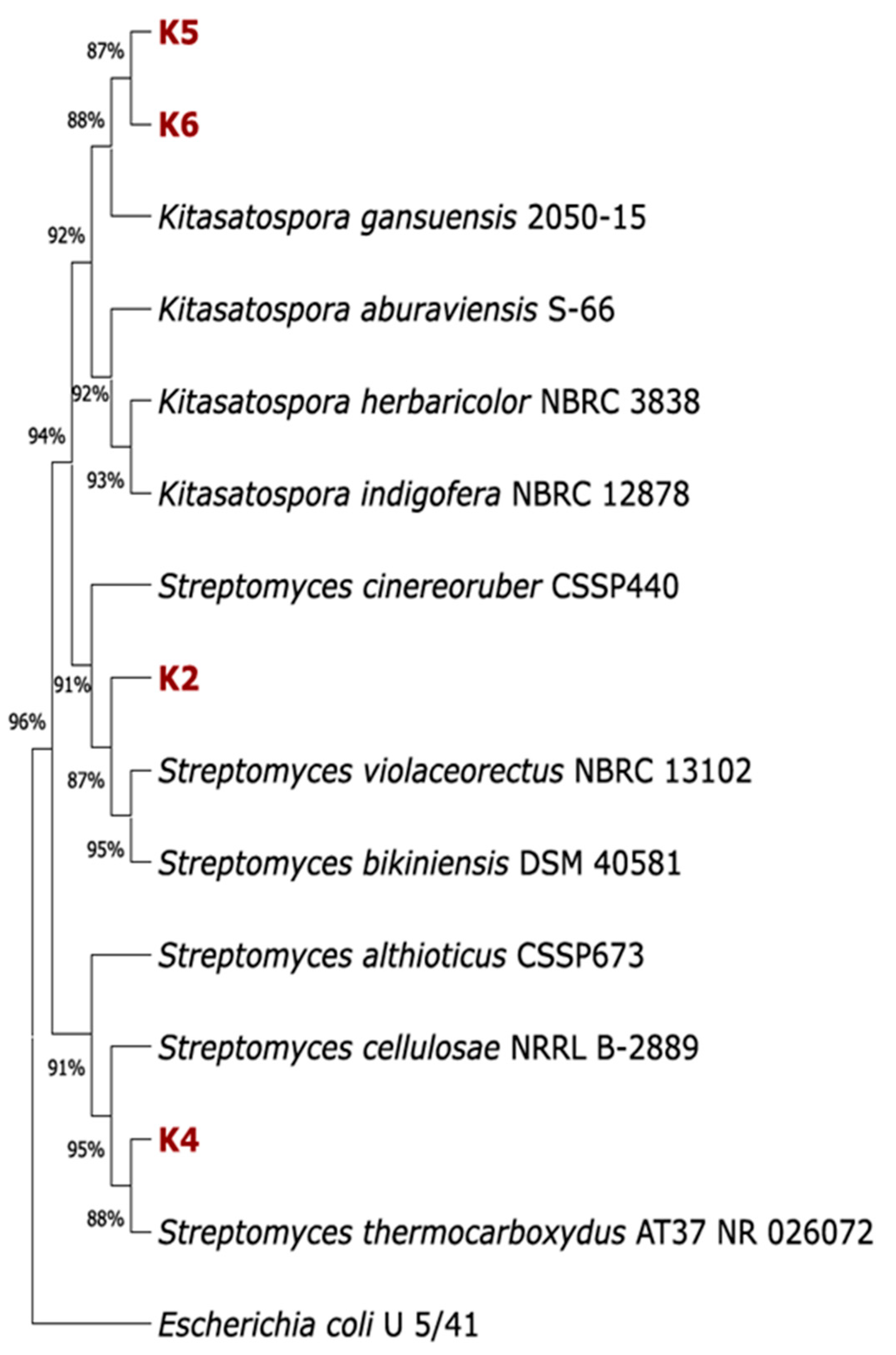 3.1. Phylogenetic Characterisation of the Actinomycetes Strains