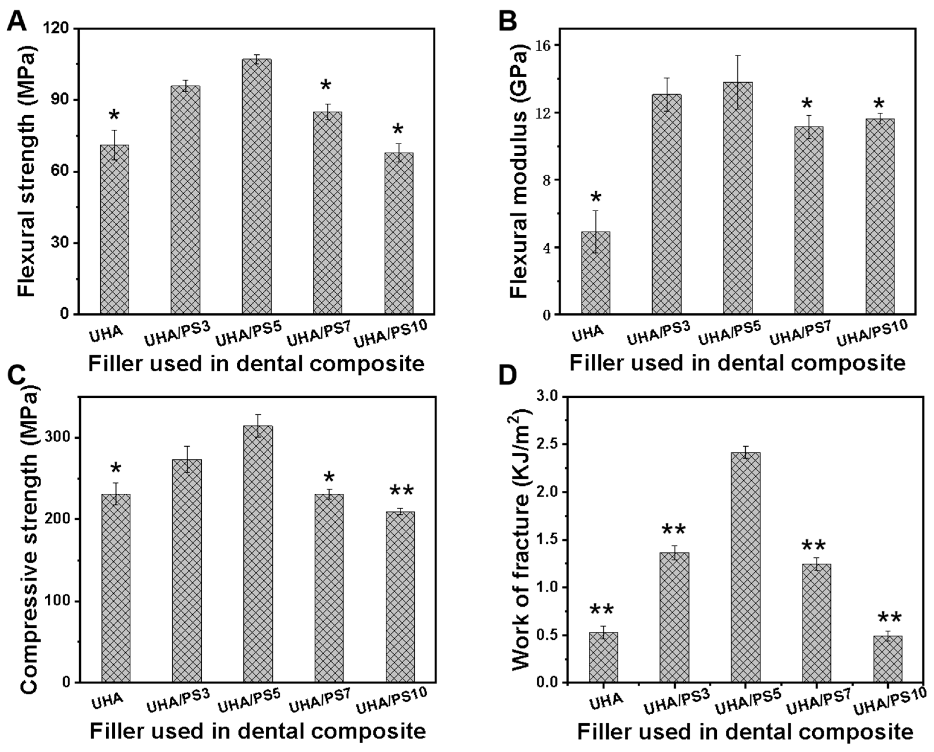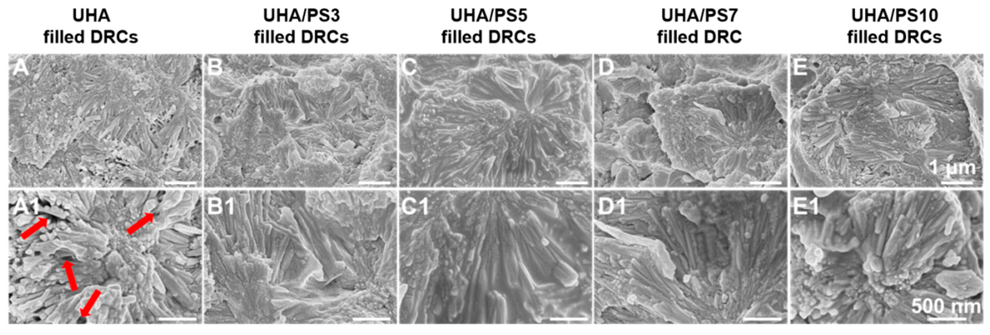 3.4. Mechanical Performance of UHA/PSx-Filled RDCs