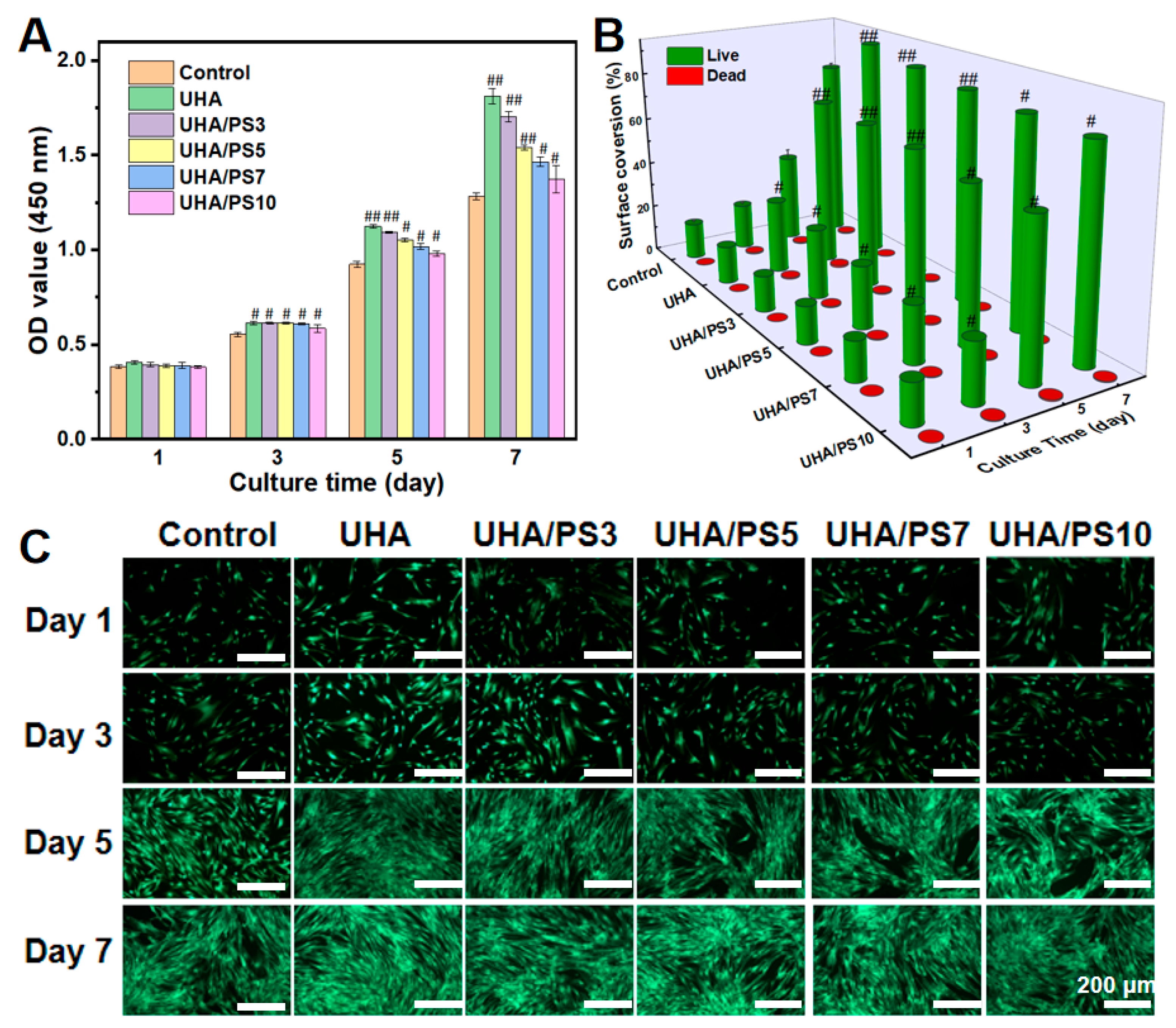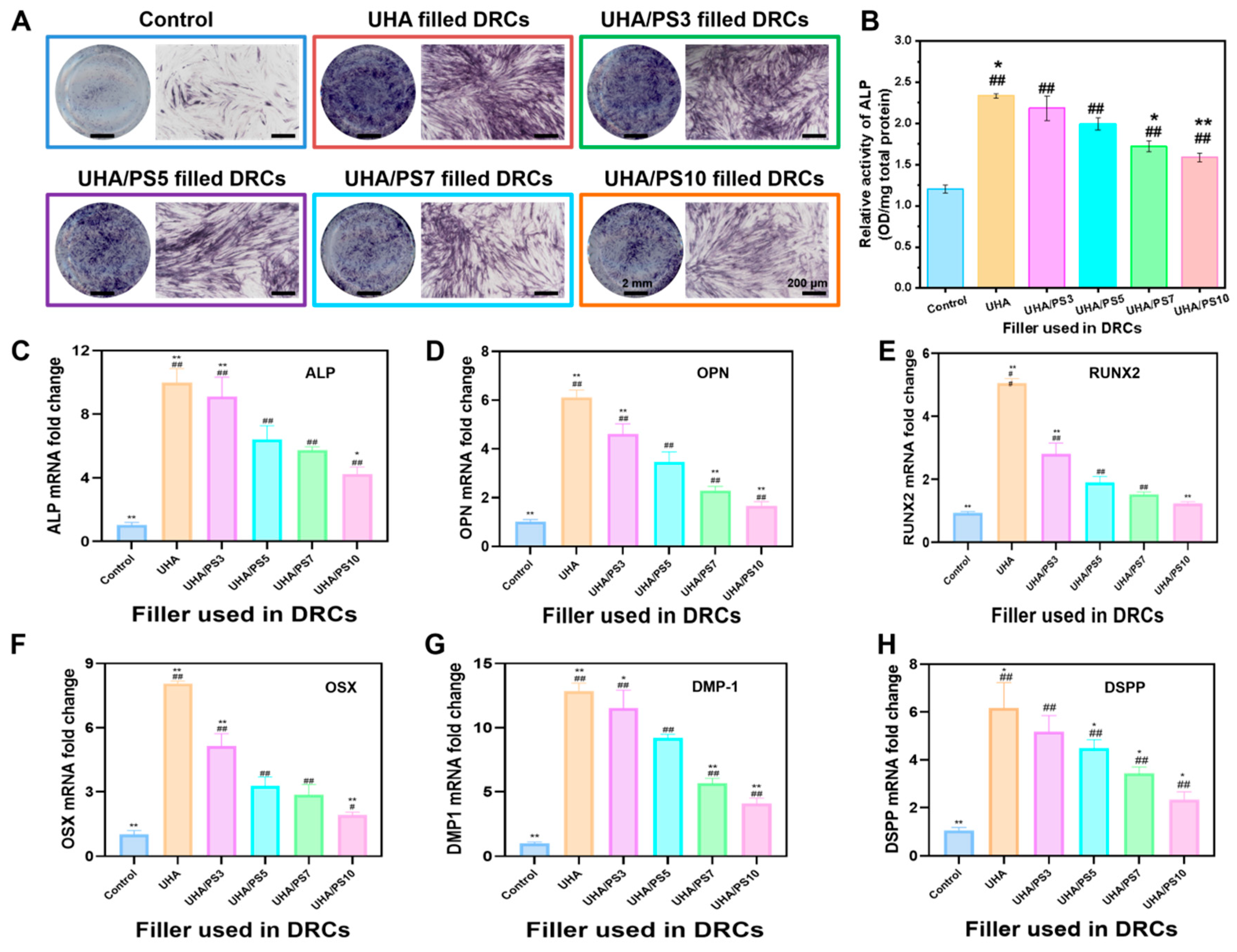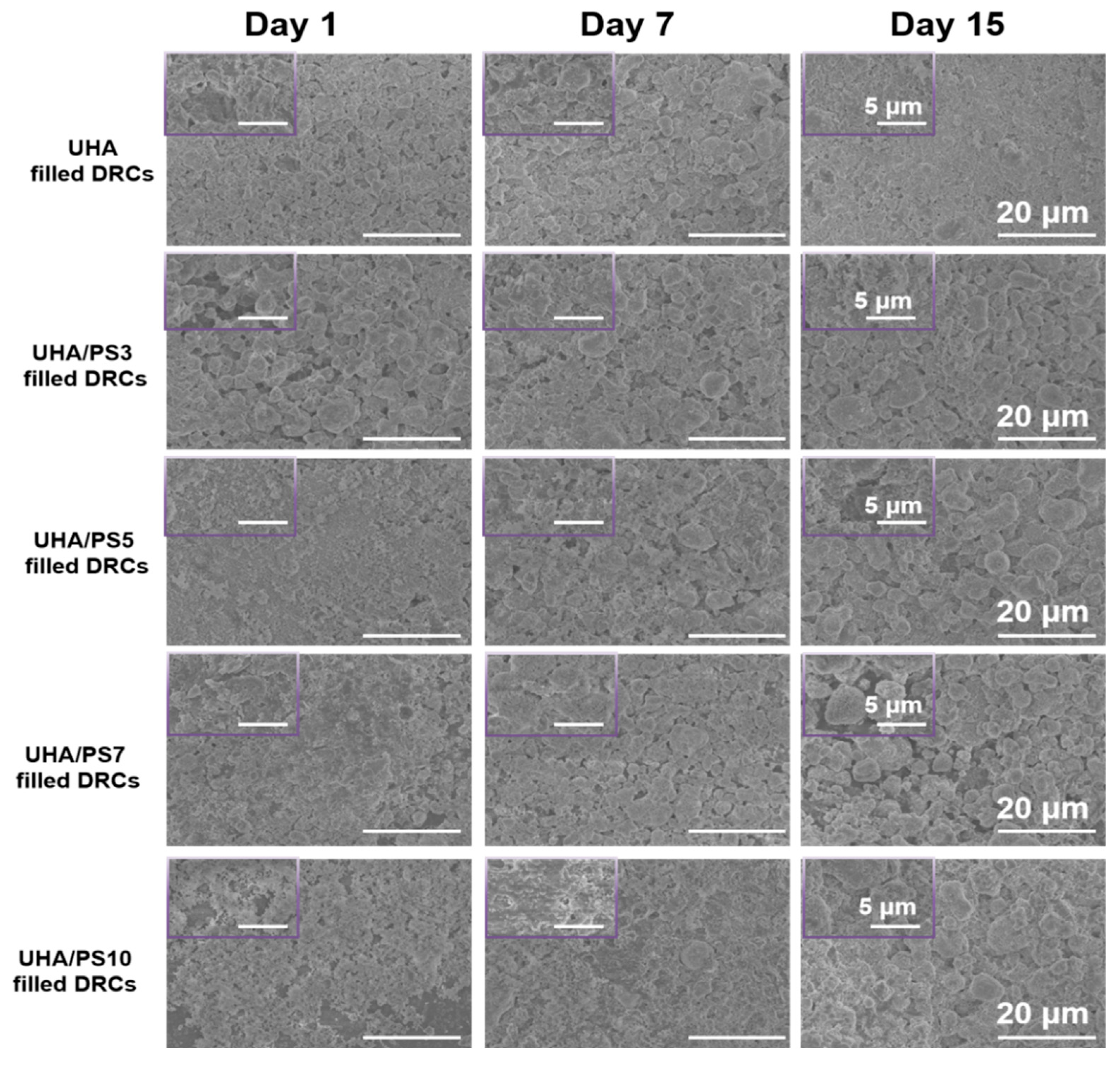 2.4.7. In Vitro Cell Activity of UHA/PSx-Filled DRCs