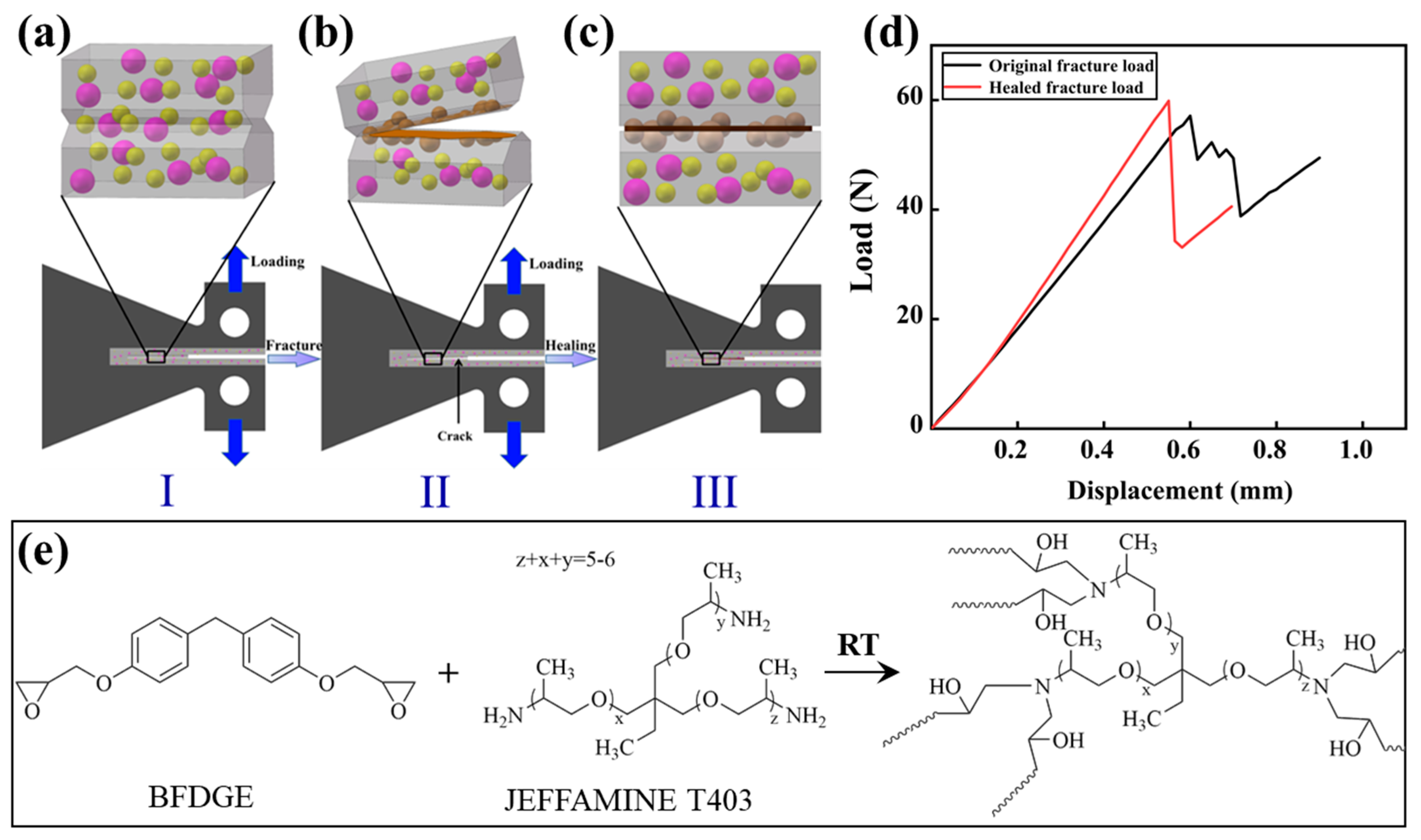 - Yang, Z.; Fang, X.; Lai, S.; Xiong, D.; Wang, Y.; Zhang, C.; He, H.; Zhang, H. A Self-healing Epoxy Cured with Anhydride at Middle and High Temperatures. China Plast. 2021, 35, 15–23. [Google Scholar]