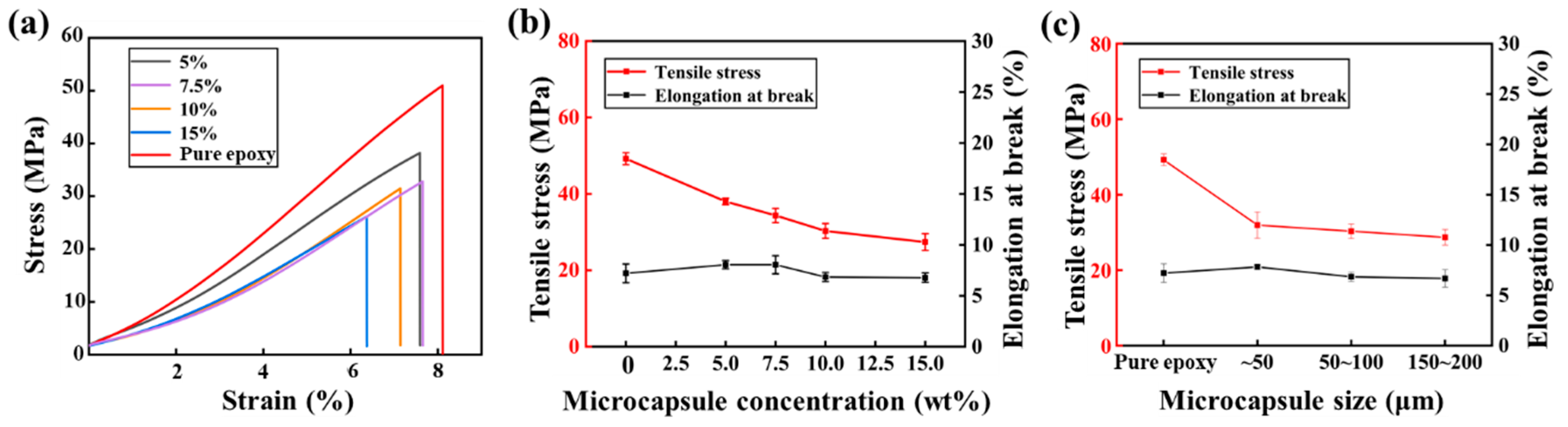 - Zhu, M.; Xiao, K.; Zhang, H. High-performance self-healing epoxy by microencapsulated epoxy-amine chemistry II: Performance of the system. J. Polym. Sci. 2024, 62, 5562–5574. [Google Scholar] [CrossRef]
