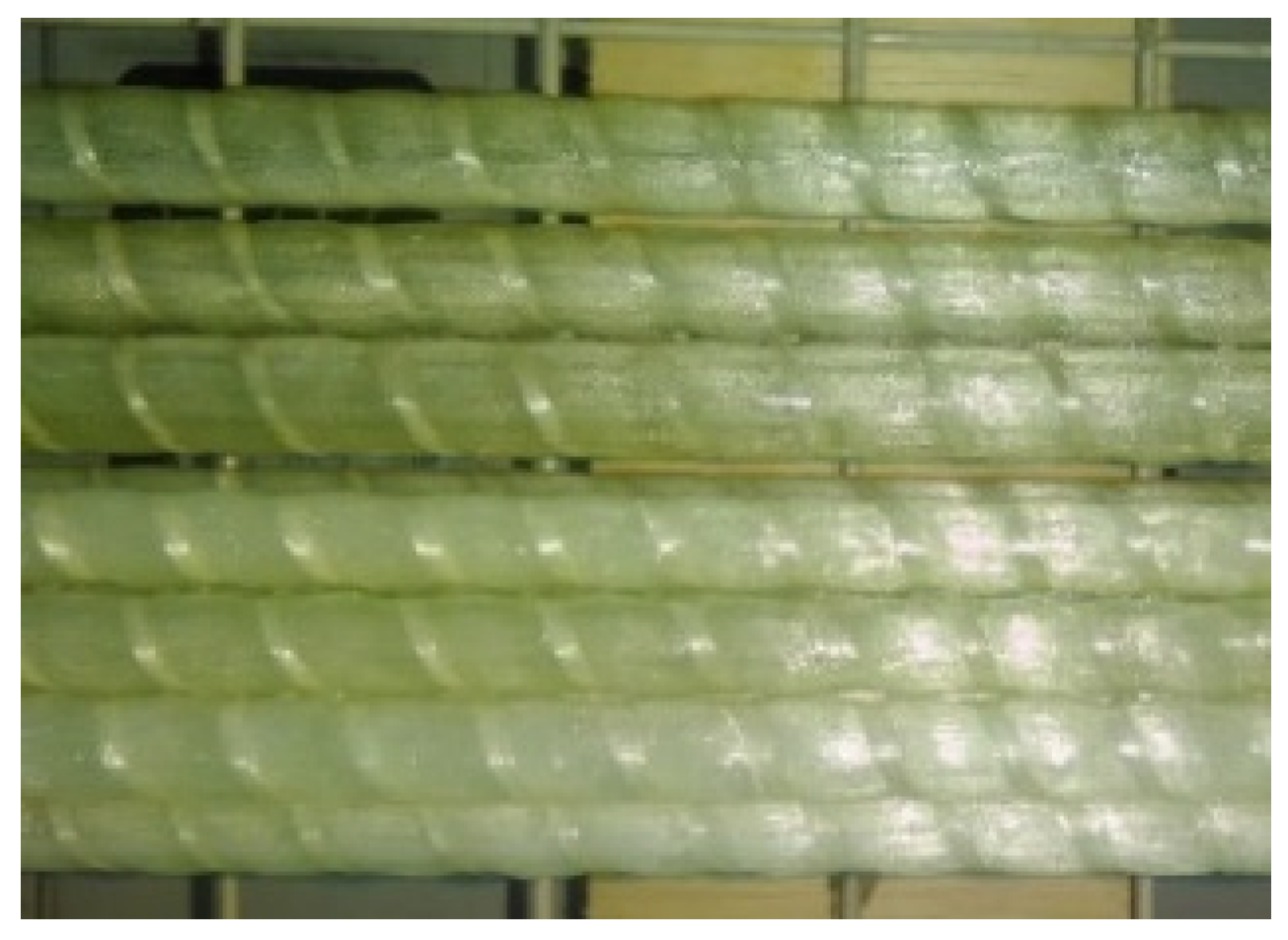- Debaiky, A.S.; Nkurunziza, G.; Benmokrane, B.; Cousin, P. Residual Tensile Properties of GFRP reinforcing bars after loading in severe environments. J. Compos. Constr. 2006, 10, 370–380. [Google Scholar] [CrossRef]