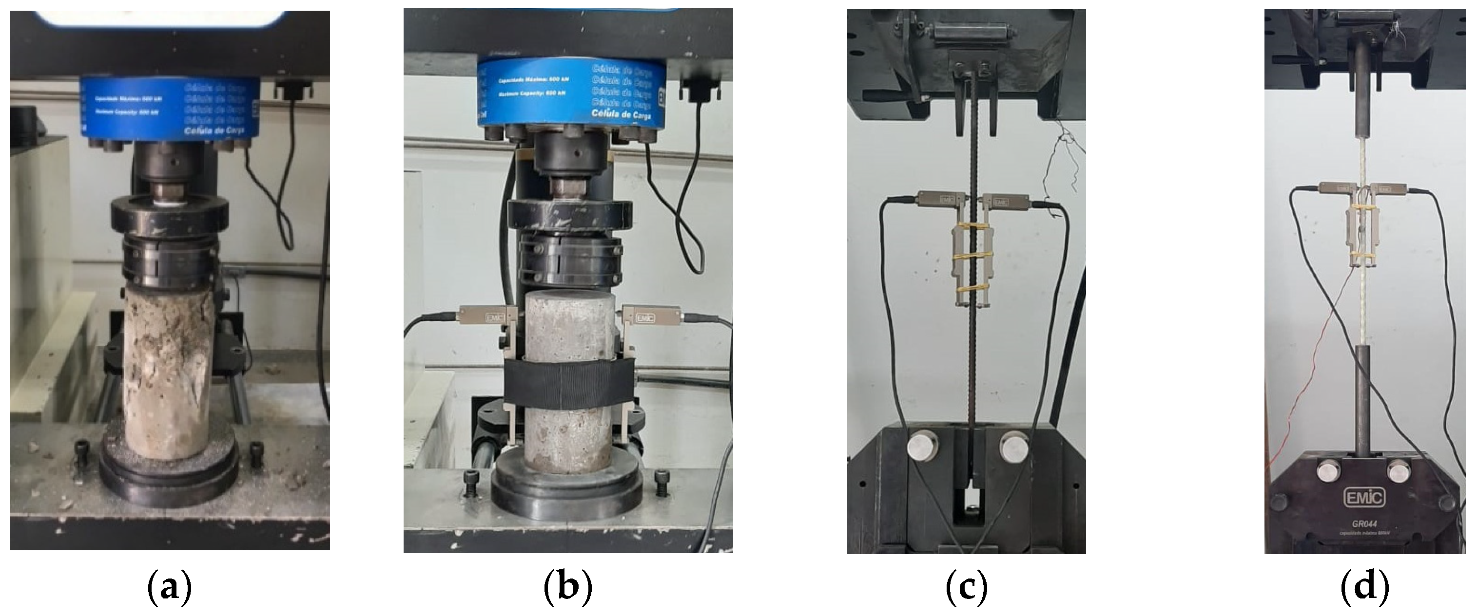 - ABNT NBR 5739; Concreto—Ensaio de Compressão de Corpos-de-Prova Cilíndricos ou Prismáticos de Concreto—Procedimento. ABNT: Rio de Janeiro, RJ, Brazil, 2018.