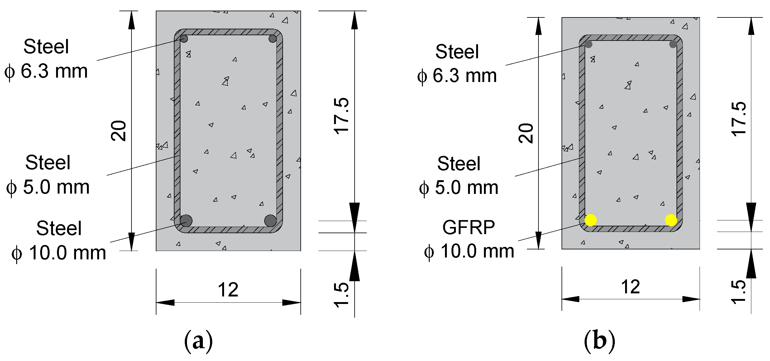 3.1. Concrete, Steel, and GFRP