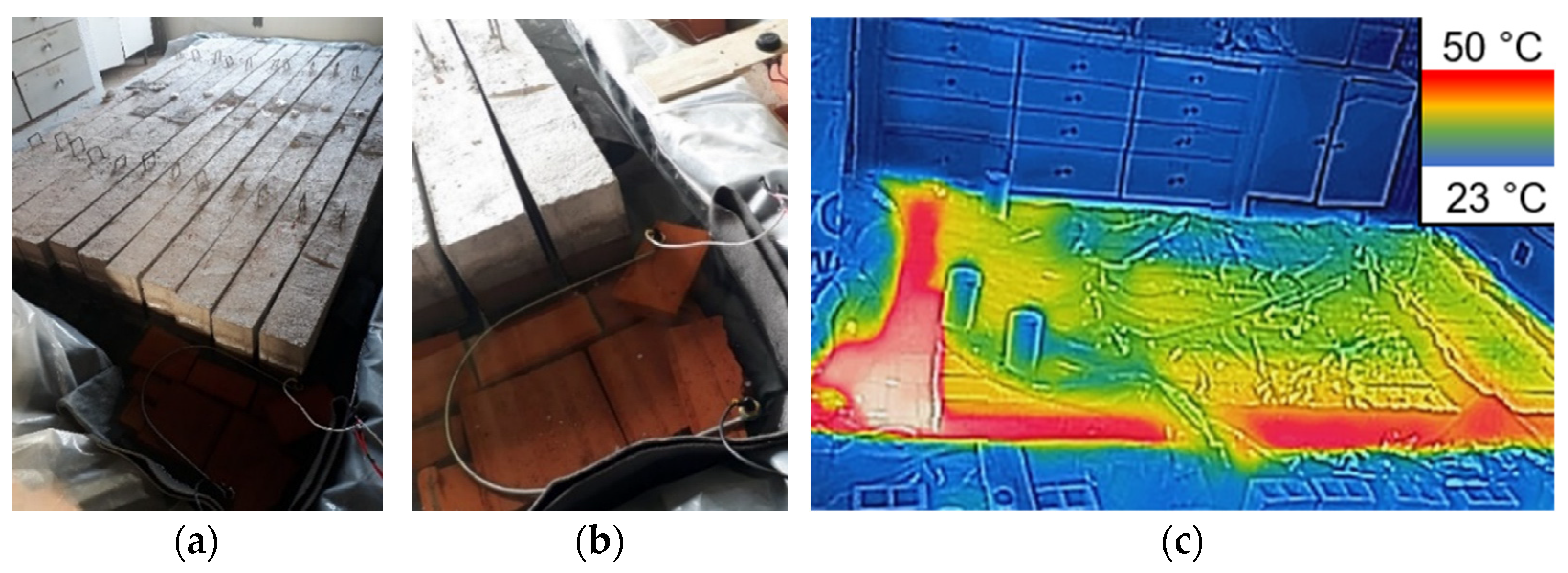 - Thongchom, C.; Bui, L.V.H.; Poonpan, N.; Phudtisarigorn, N.; Nguyen, P.T.; Keawsawasvong, S.; Mousa, S. Experimental and numerical investigation of steel- and GFRP-reinforced concrete beams subject to fire exposure. Buildings 2023, 13, 609. [Google Scholar] [CrossRef]