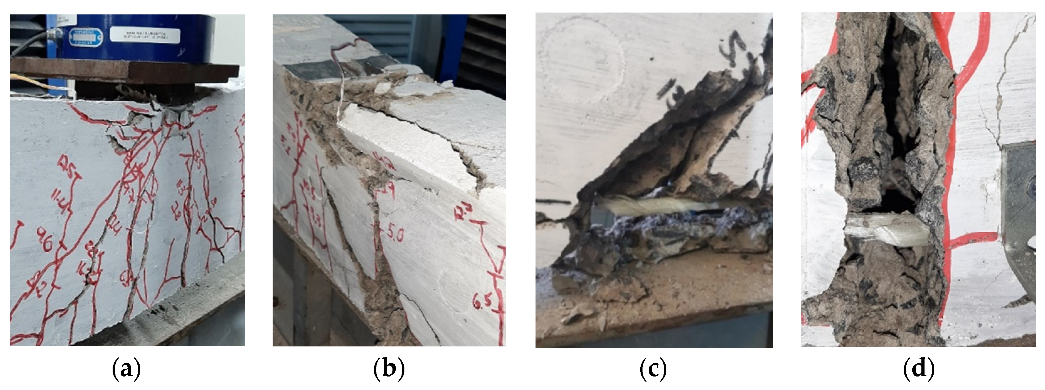 - Belay, A.A.; Krassowska, J.; Kosior-Kazberuk, M. Comparative performance analysis of small concrete beams reinforced with steel bars and non-metallic reinforcements. Appl. Sci. 2024, 14, 3957. [Google Scholar] [CrossRef]