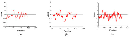- Kyte, J.; Doolittle, R.F. A Simple Method for Displaying the Hydropathic Character of a Protein. J. Mol. Biol. 1982, 157, 105–132. [Google Scholar] [CrossRef] [PubMed]