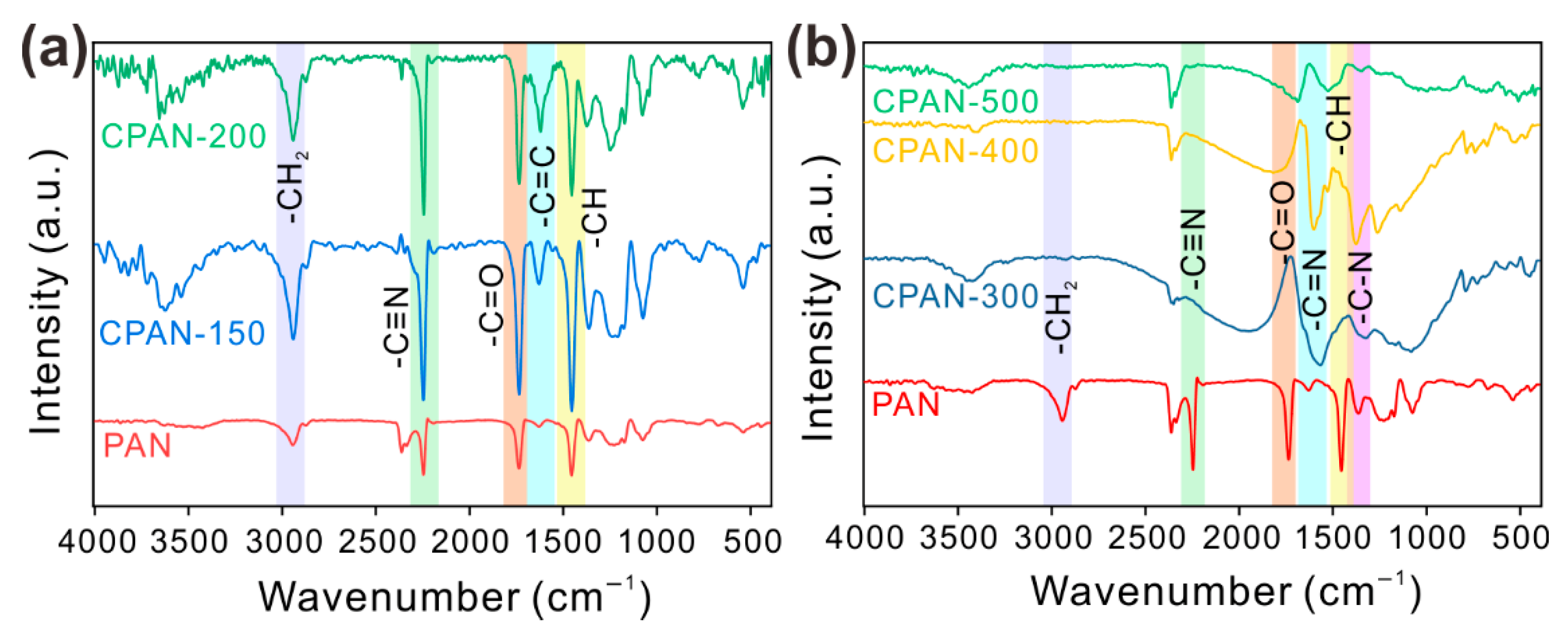 - Jiang, F.; Wang, X.; Fan, X.; Zhu, H.; Yin, J. Oxygen-Functionalized Polyacrylonitrile Nanofibers with Enhanced Performance for Lithium-Ion Storage. ACS Omega 2021, 6, 2542–2548. [Google Scholar] [CrossRef] [PubMed]